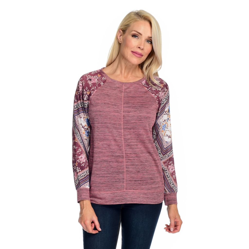 Woven Printed Top in floral design Multi-colored style 34 raglan sleeves and scoop neckline Classic fit for comfort Specifications. ONE WORLD TANK TOP.