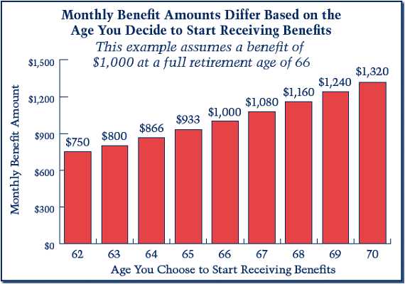 By calling Social Security at 800-772-1213. If you delay taking your benefits from your full retirement age up to age 70 your benefit amount will increase. Please note that relatively few people can begin receiving a benefit at exact age 62 because a person must be 62 throughout the first month of retirement.